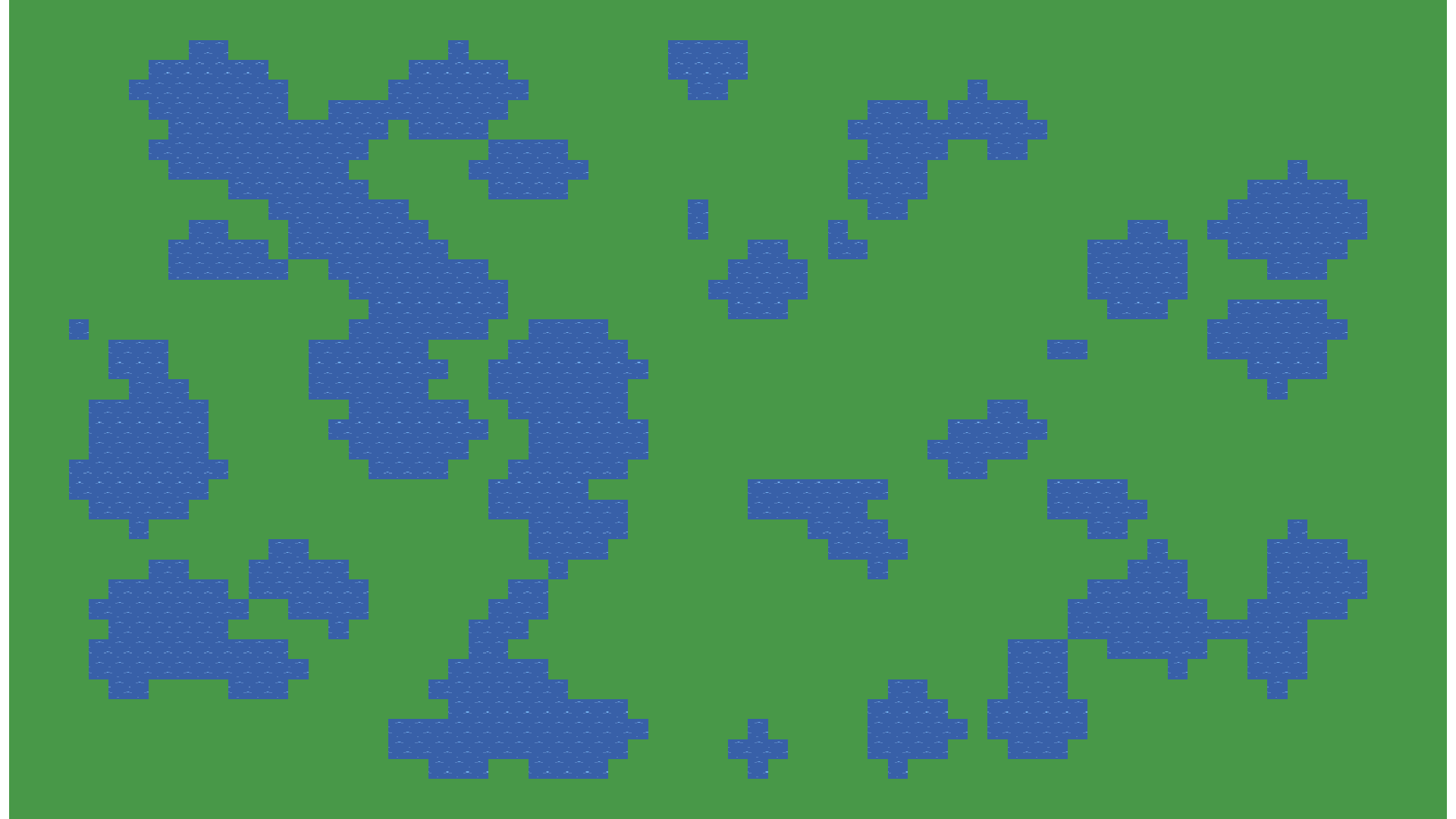 I needed to add a bit more control on how lake bodies are generated. Previously I just had a "coverage" parameter between [0,1] but that was not enough. Now it's also parameterised on if we want the water clustered all together in a single lake, or have multiple smaller ones. All this was done to be able to make a nice oasis. Below are some example lakes.